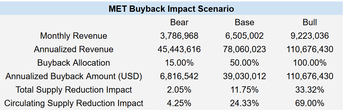 - ◆Meteora’s revenue profile supports multiple buyback scenarios scaled to protocol growth trajectory and competitive positioning requirements: