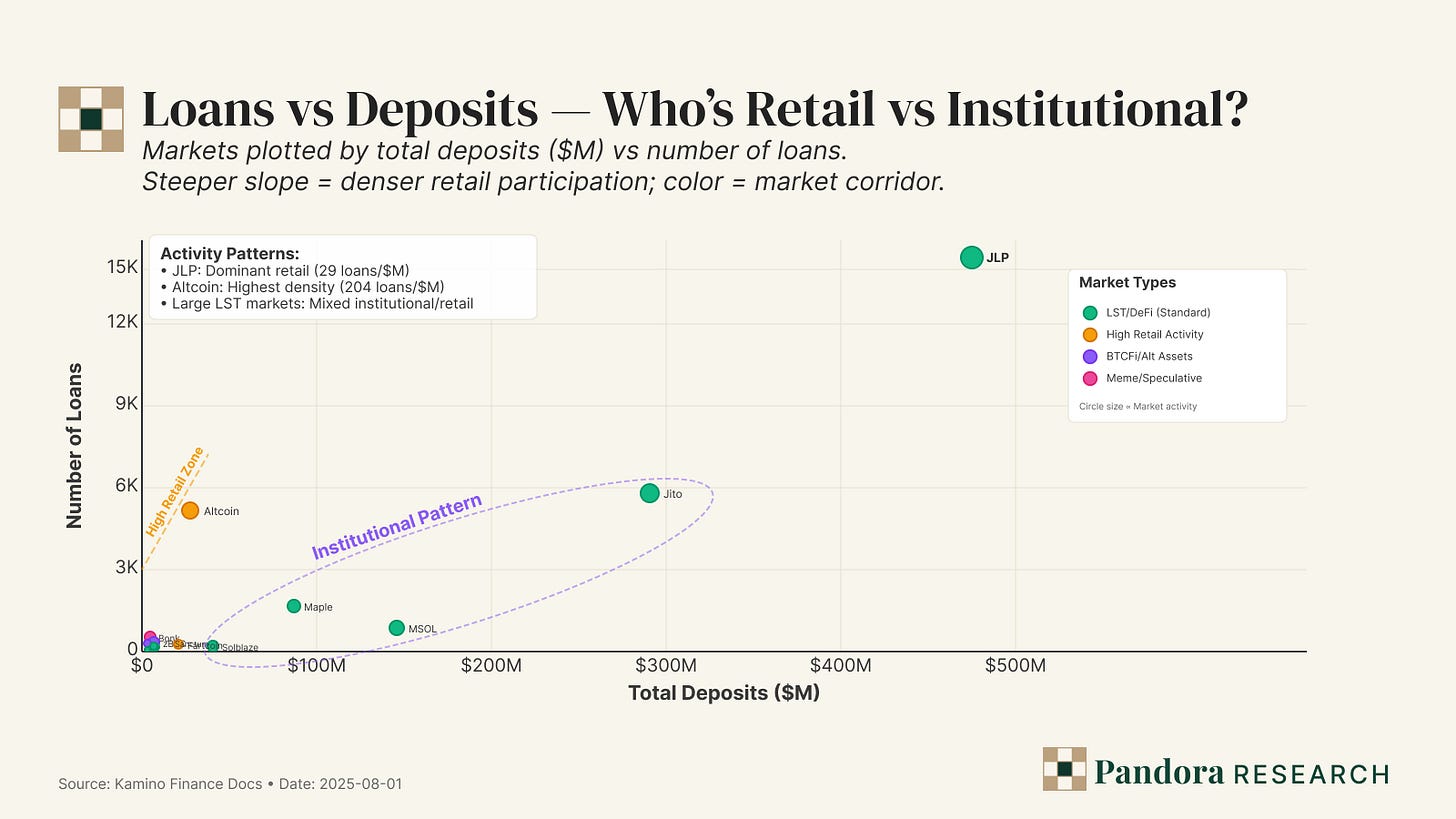 Why this matters for Season 4: incentives often over-credit deposit growth and undercount borrow conversion. The mix chart tells us where conversion is most likely to be sticky once rewards step down: LST lanes and JLP first, retail-dense “meme/spec” lanes only if they quickly demonstrate post-campaign stickiness. If we have to rank where a marginal incentive dollar should go, the scatter says: (1) LST corridor with good liquidation history; (2) JLP as the throughput anchor; (3) selective retail lanes only when retention proves out.