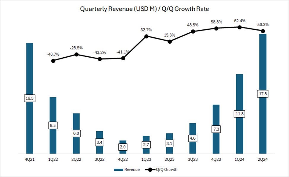 Aave also stands out as one of the few DeFi protocols that have exceeded their 2021 bull market metrics. For instance, its quarterly revenue has surpassed that of 4Q21 which was the peak of the bull market. Notably, revenue growth continued to accelerate sequentially even as the market went sideways from Nov ‘22 to Oct ‘23. Growth continued to remain strong, growing by 50-60% Q/Q as the market picked back up in 1Q24 and 2Q24.